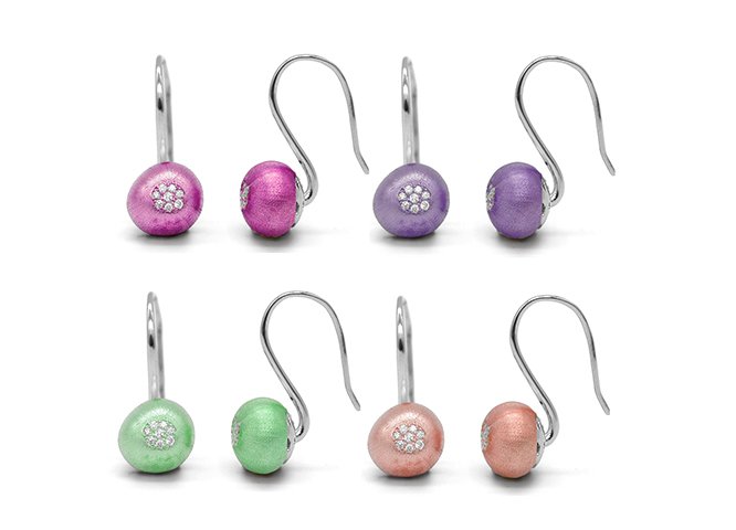 The collection uses a large spectrum of colours combining stones with silver into earrings and rings.